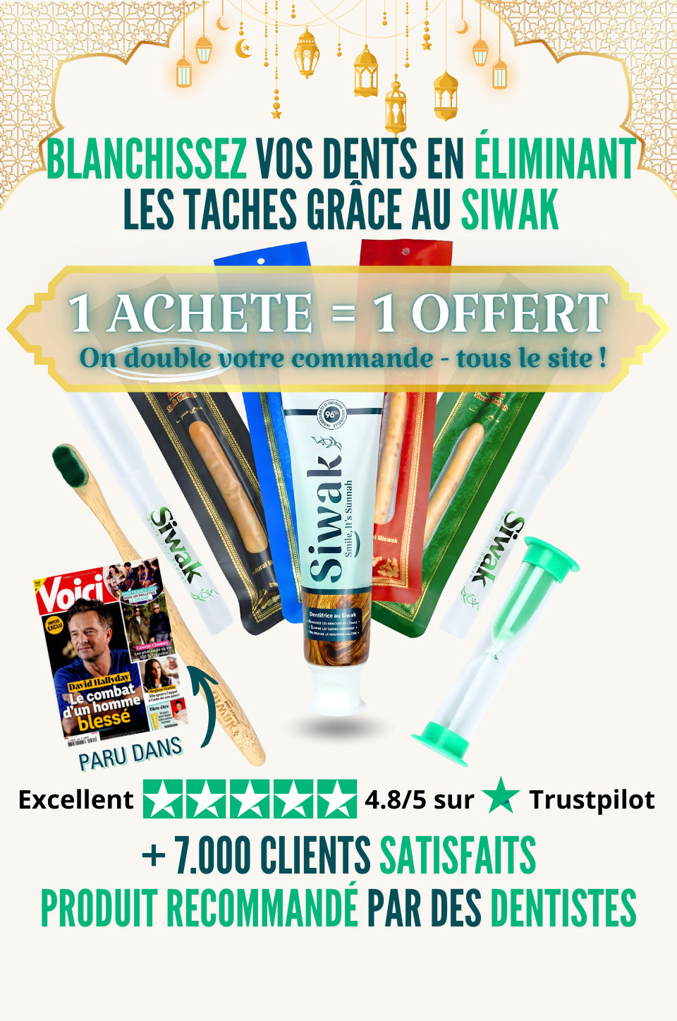 Oubliez la douleur, les produits chimiques et les traitements agressifs ! SiwakSmile allie siwak et technologie avancée pour un sourire éclatant en toute sécurité. Contrairement aux blanchiments classiques, il éclaircit tout en préservant votre bouche.